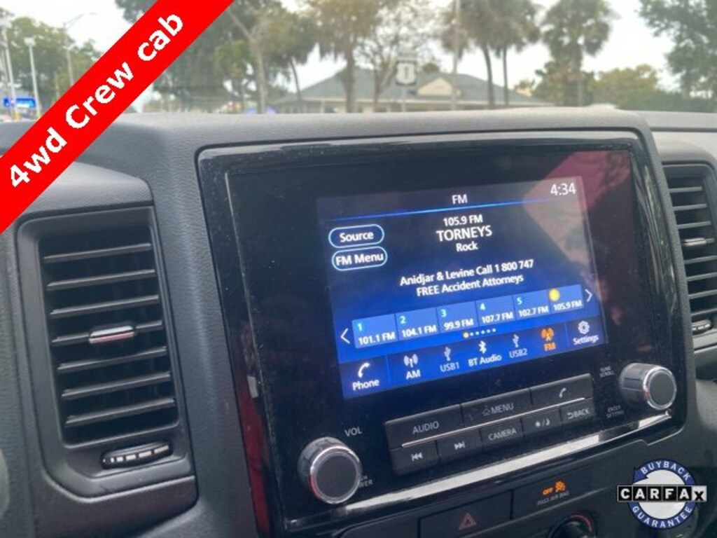 Our Nissan, factory trained, Master technician perform a 167 point inspection and completed routine maintenance. Serving the central Florida area since 1971 and continuing a wonderful history with our new and long time customers, today. We are conveniently located in Titusville, FL just 35 minutes from Orlando Int'l airport, off I-95 exit 220. East 2.7M to US1, turn right on US1- to 1128 S Hopkins Ave Titusville, FL 32780. Technology Package (Blind Spot Warning, High Beam Assist (HBA), Intelligent Cruise Control, Lane Departure Warning System, Rear Automatic Braking (RAB), Rear Cross Traffic Alert (RCTA), and Rear Sonar System), Nissan Certified Certified, 4WD, 16" Styled Steel Wheels, 3.692 Axle Ratio, 4 Speakers, 4-Wheel Disc Brakes, ABS brakes, Air Conditioning, AM/FM radio: SiriusXM, Anti-whiplash front head restraints, Apple CarPlay/Android Auto, Brake assist, Bumpers: body-color, Carpeted Floor Mats, Cloth Seat Trim, Delay-off headlights, Driver door bin, Dual front impact airbags, Dual front side impact airbags, Electronic Stability Control, Front anti-roll bar, Front Bucket Seats, Front Center Armrest, Front reading lights, Front wheel independent suspension, Fully automatic headlights, Illuminated entry, Knee airbag, Low tire pressure warning, Occupant sensing airbag, Overhead airbag, Panic alarm, Passenger door bin, Power steering, Power windows, Radio data system, Radio: SXM/AM/FM/AUX/USB Audio System w/4 Speakers, Rear anti-roll bar, Rear step bumper, Remote keyless entry, Speed control, Speed-sensing steering, Splash Guards, Split folding rear seat, Steering wheel mounted audio controls, Tachometer, Tilt steering wheel, Traction control, Trip computer, and Variably intermittent wipers.